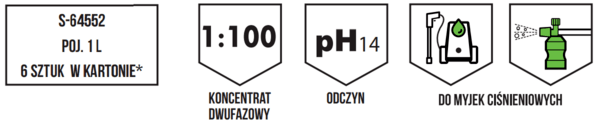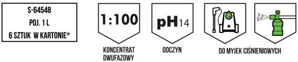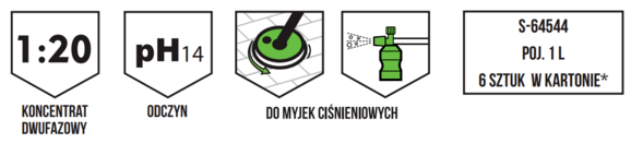 Preparat do zastosowań profesjonalnych. Dwukomponentowy środek zasadowy. Przeznaczony do mycia silnie zabrudzonych powierzchni twardych, odpornych na zasady. Zalecany do mycia maszyn i urządzeń w przemyśle motoryzacyjnym, ciężkim, a także w rolnictwie. Zalecany do mycia ciśnieniowego. Unikać stosowania na nagrzanych i nasłonecznionych powierzchniach.