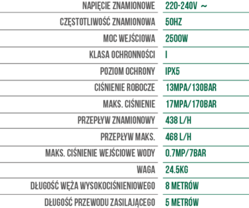 Urządzenia, wyposażone w silnik z uzwojeniem miedzianym i wydajną pompę ssąco-tłoczącą. Urządzenie wyposażone jest w funkcję Auto-stop, posiada pojemny zbiornik na detergent oraz kontrolę dozowania detergentu.
