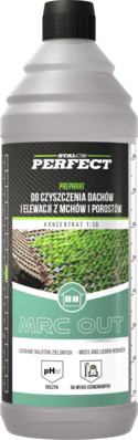 Preparat do zastosowań profesjonalnych, do zmywania i czyszczenia dachów i elewacji z glonów, mchów i porostów. Preparat zabezpiecza czyszczoną powierzchnię przez dłuższy okres czasu, wytwarzając środowisko przeciwdziałające powstawaniu wszelkiego rodzaju mikroorganizmów. Doskonale nadaje się do czyszczenia, konserwacji i ochrony dachówki ceramicznej i betonowej oraz blachodachówki przed szkodliwym działaniem zielonych nalotów.