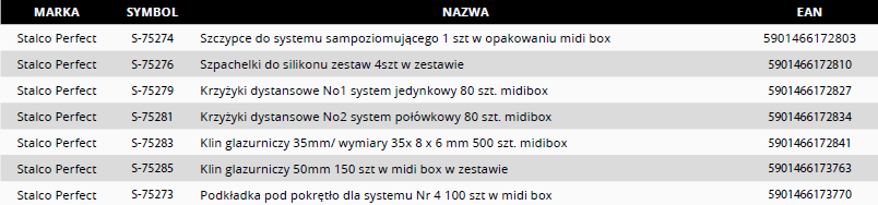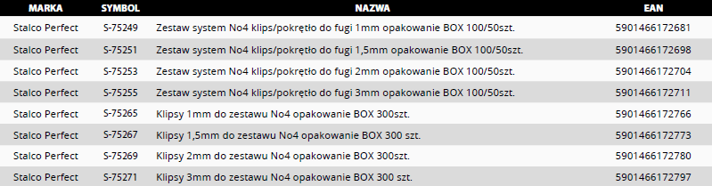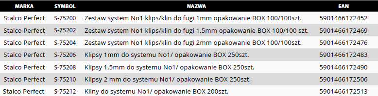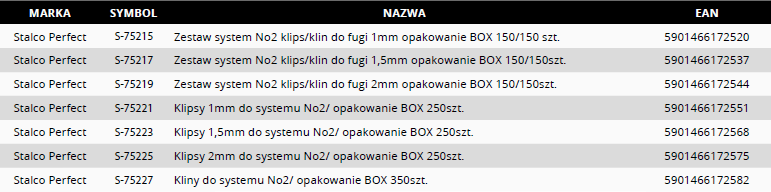 System klips/ klin w linii narzędzi Stalco Perfect to połączenie doświadczenia glazurnika z jego potrzebami w zakresie profesjonalnego produktu. Jesteśmy dostawcą który zapewnia trzy niezależne systemy do poziomowania glazury. Każdy z systemów jest dedykowany dla różnych wymagań glazurnika. Do systemów w linii Stalco Perfect mamy kompatybilne narzędzia w ramach trzy systemy => jedne narzędzia wspomagające. Nasze produkty łączą w sobie jakość, designe i atrakcyjną cenę.
