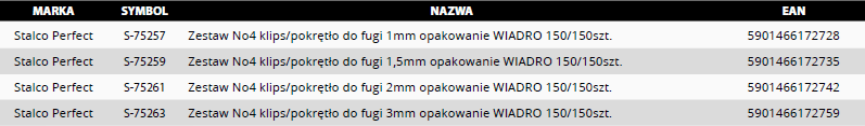 Dobór właściwego systemu poziomowania, w przypadku oferty Stalco Group, jest bardzo prostą czynnością. Jesteśmy jedyni na rynku którzy mają 3 systemy klips/ klin oraz system skręcany. Szerokość naszej oferty umożliwia każdemu wykonawcy dobranie właściwych klipsów i klinów do typu płytek jakie będą układane. Dodatkowy osprzęt w postaci szczypiec jest prosty w użytkowaniu i przyspiesza pracę przy zaciąganiu klinów. Nasze produkty takie jak szczypce czy klipsy są kompatybilne z klinami dostępnymi na rynku.