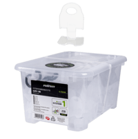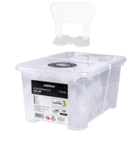 Nasz system jest zapakowany w przezroczyste BOXy, które po wykorzystaniu klipsów mogą służyć do przechowywania klinów lub drobnych narzędzi glazurniczych. Wprowadzone do sprzedaży wiadra o pojemności 10L dla systemu skręcanego można wykorzystać do celów budowlanych jak i przydomowych